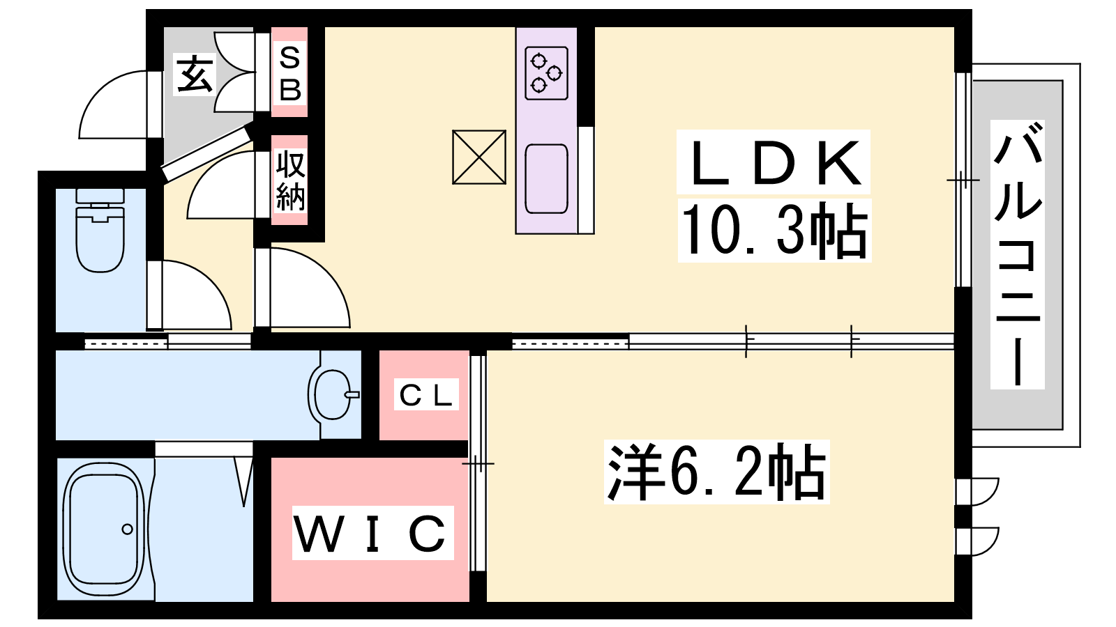 - LDK10.3帖、洋室6.2帖