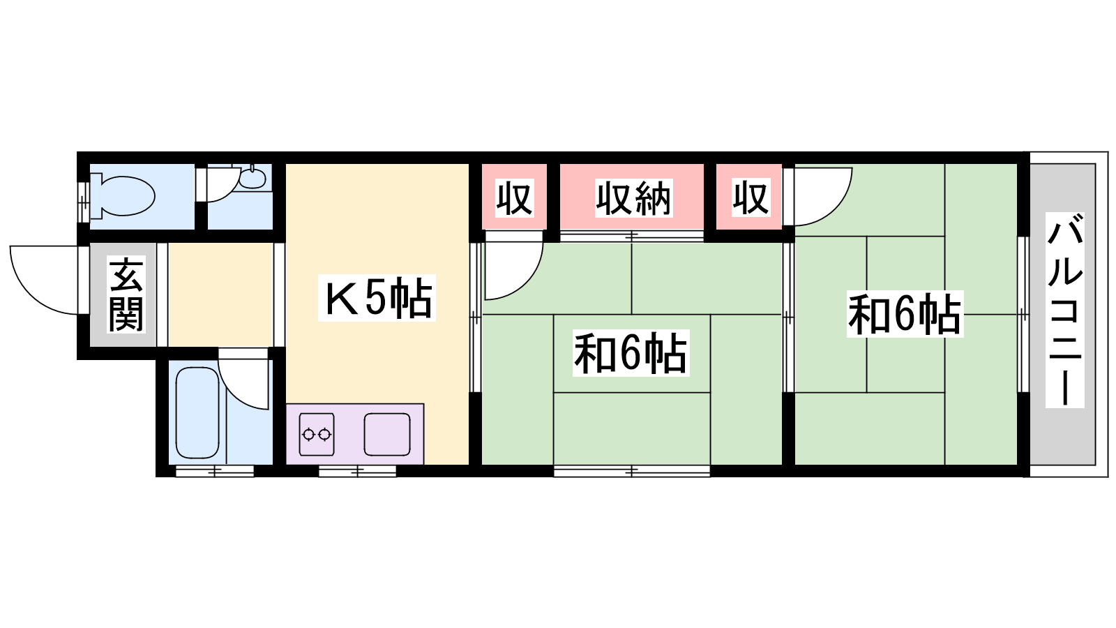 2Kの間取りでこの賃料!野里駅徒歩圏内!人気の角部屋!