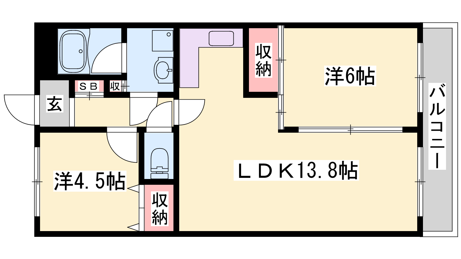 - LDK13.8帖、洋室6帖、洋室4.5帖