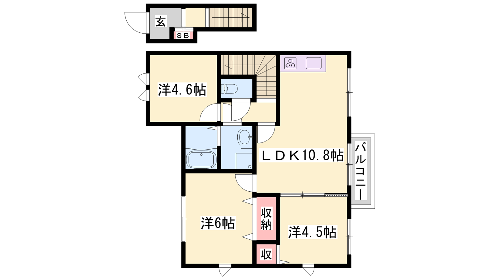 - LDK10.8帖、洋室6帖、洋室4.6帖、洋室4.5帖