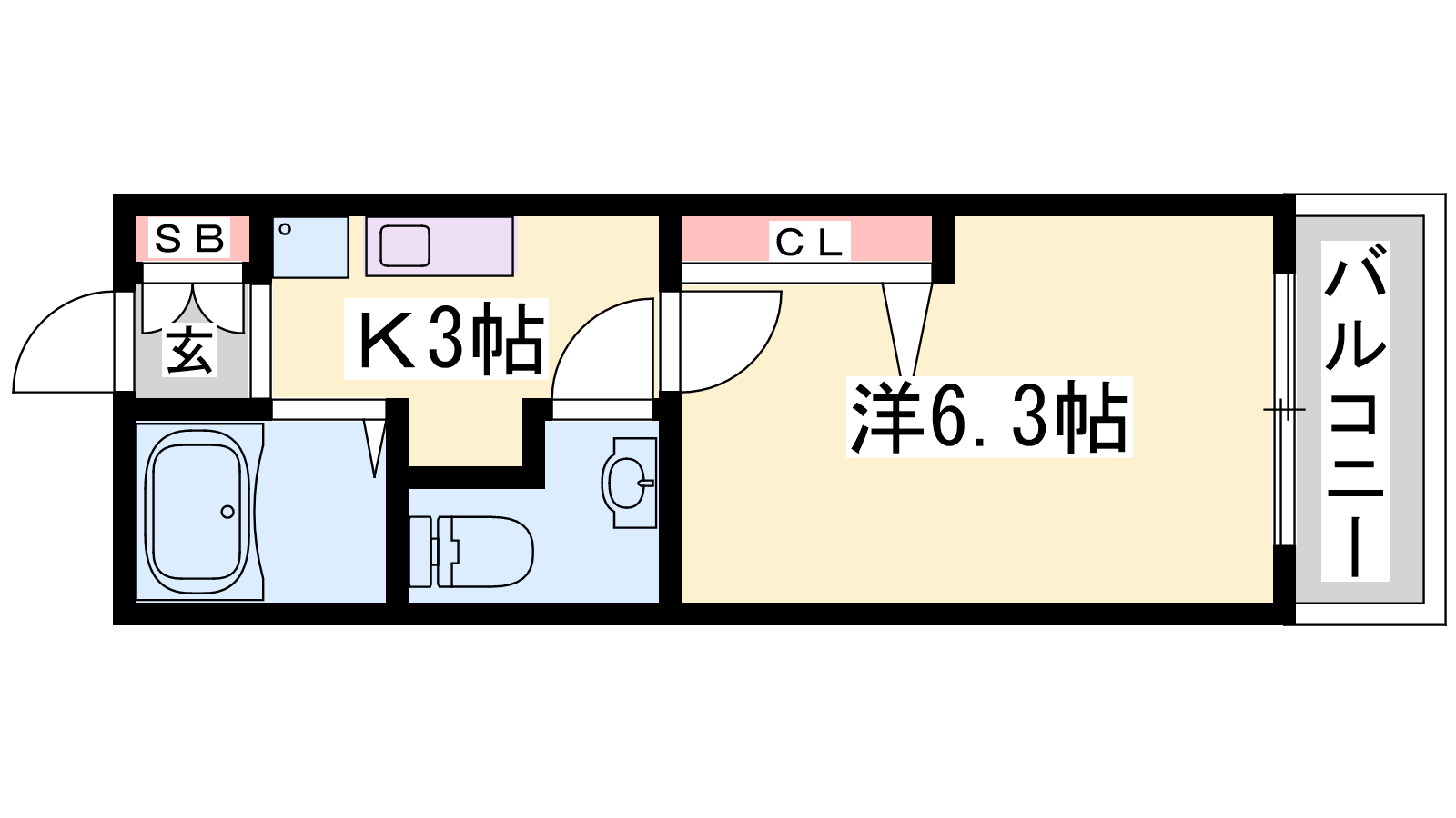 - K3帖、洋室6.3帖