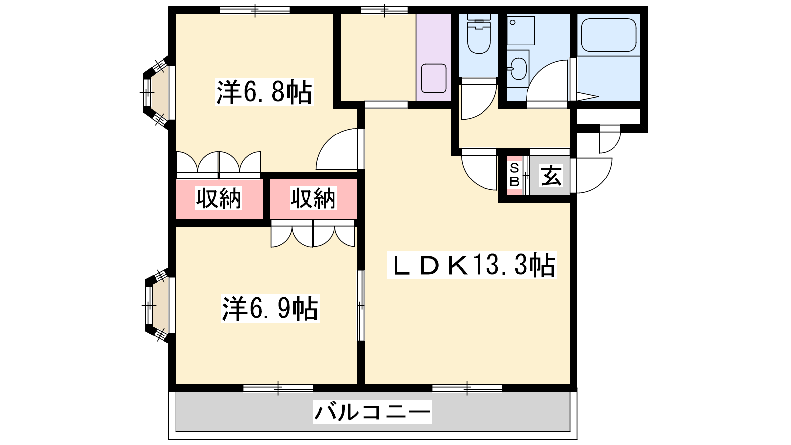 - LDK13.3帖、洋室6.8帖、洋室6.9帖