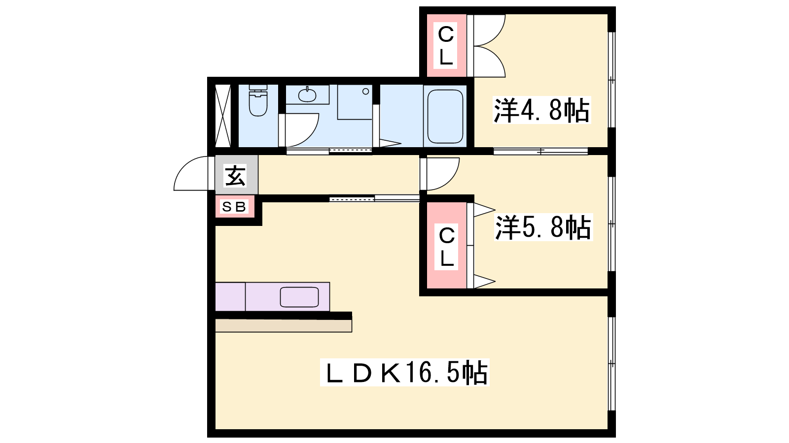 - LDK16.5帖、洋室5.8帖、洋室4.8帖