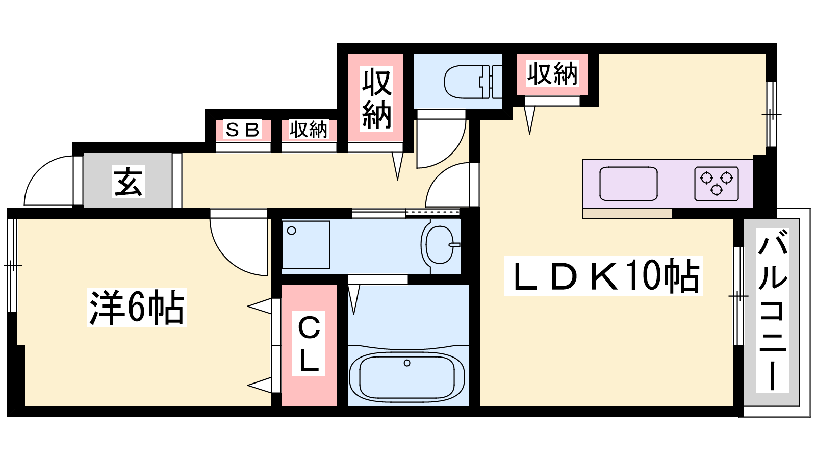 - LDK10帖、洋室6帖