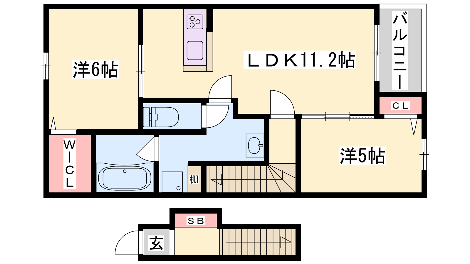 - LDK11.2帖、洋室6帖、洋室5帖