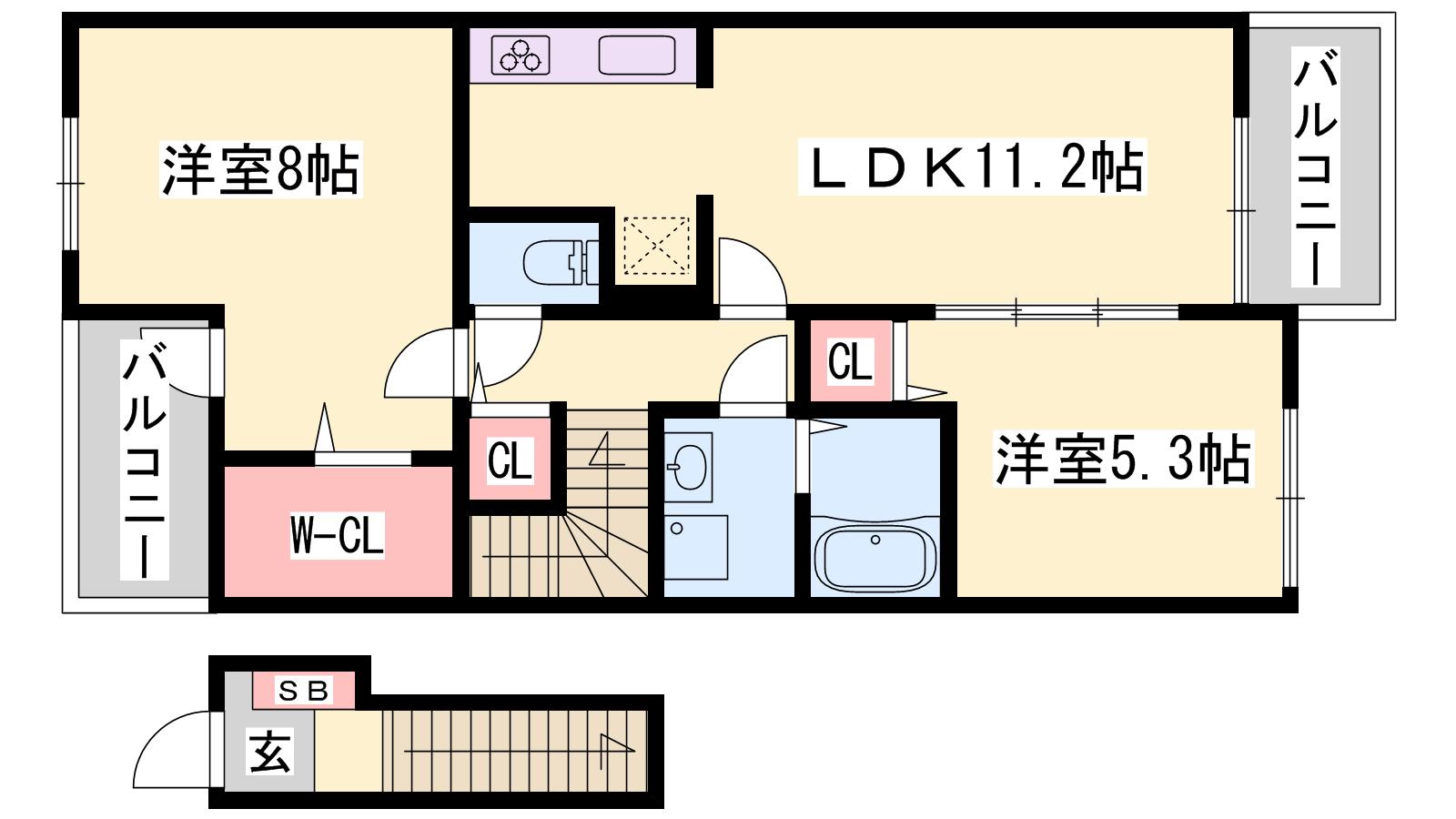 - LDK11.2帖、洋室8帖、洋室5.3帖