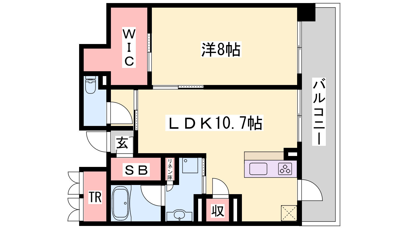 - LDK10.7帖、洋室8帖
