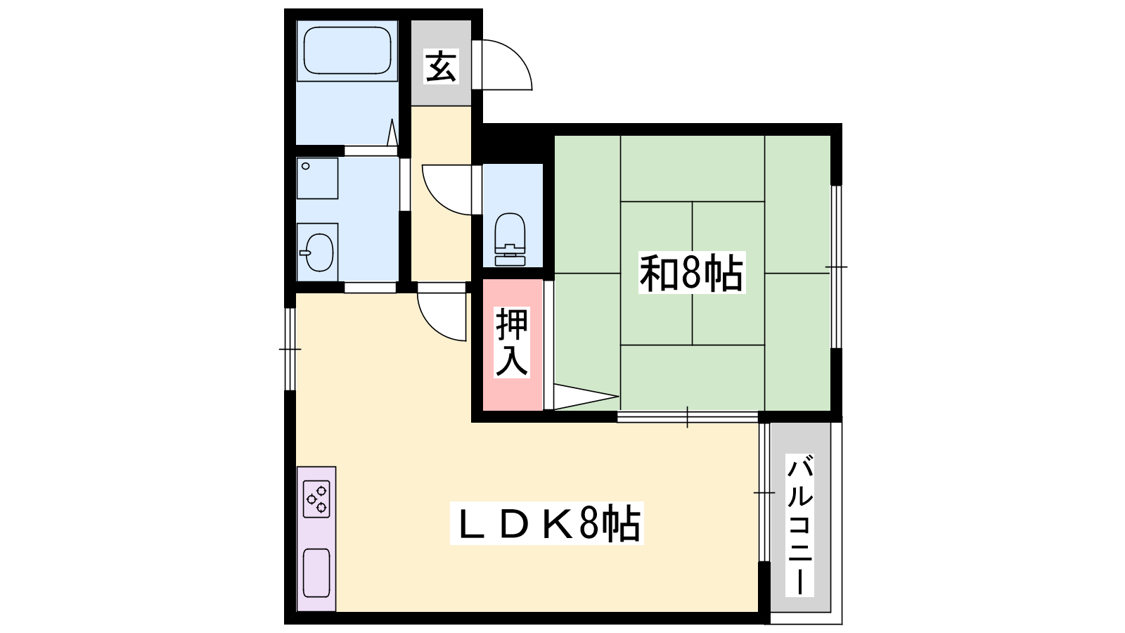 - LDK8帖、和室8帖