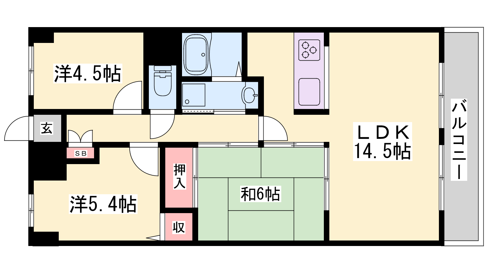 - LDK14.5帖、和室6帖、洋室5.4帖、洋室4.5帖