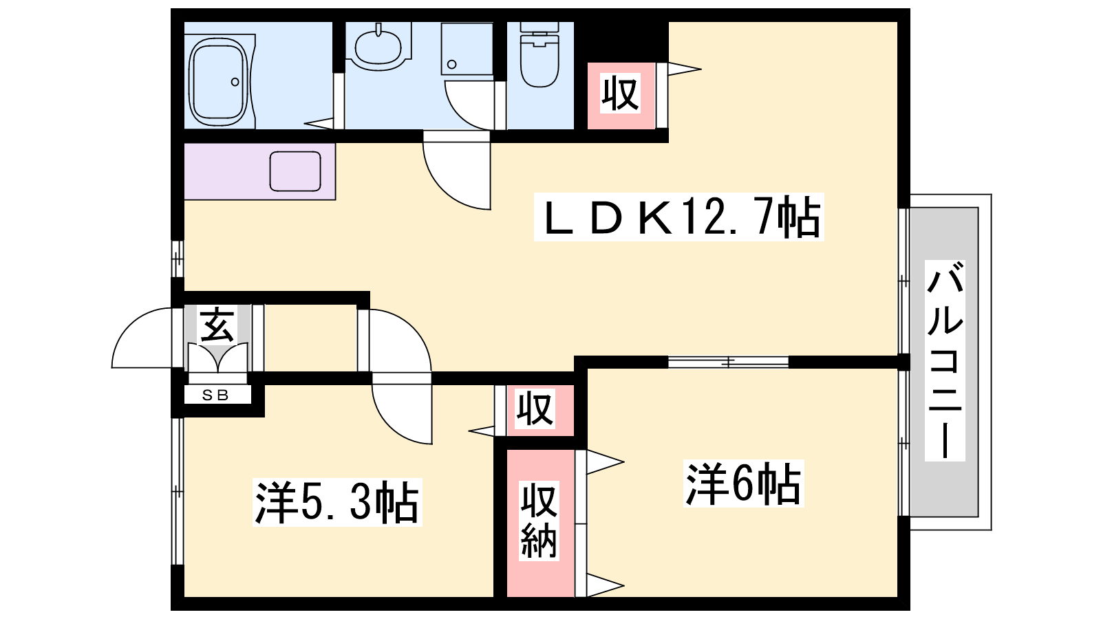 - LDK12.7帖、洋室6帖、洋室5.3帖