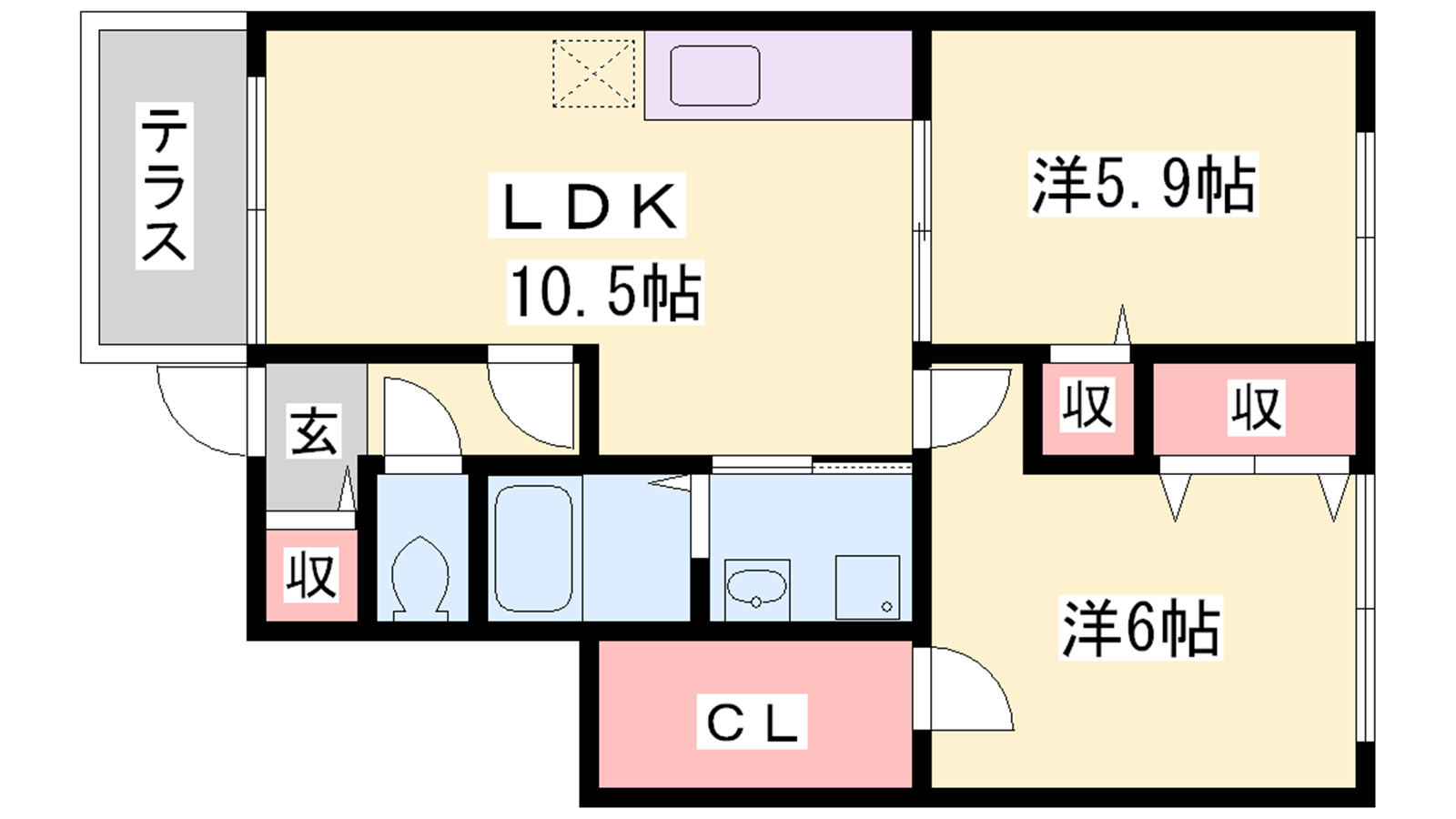 - LDK12帖、洋室6.3帖、洋室5.9帖