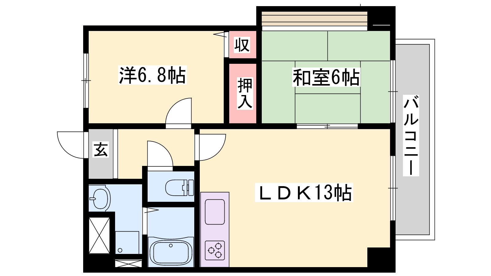 - LDK13帖、洋室6.8帖、和室6帖
