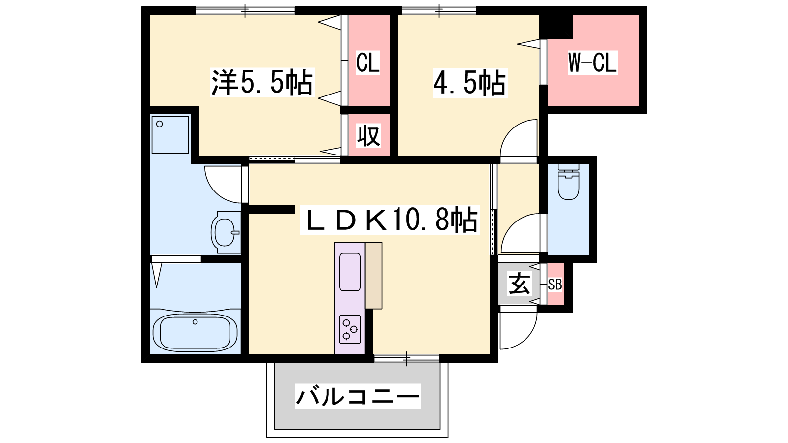 - LDK10.8帖、洋室5.5帖、洋室4.5帖