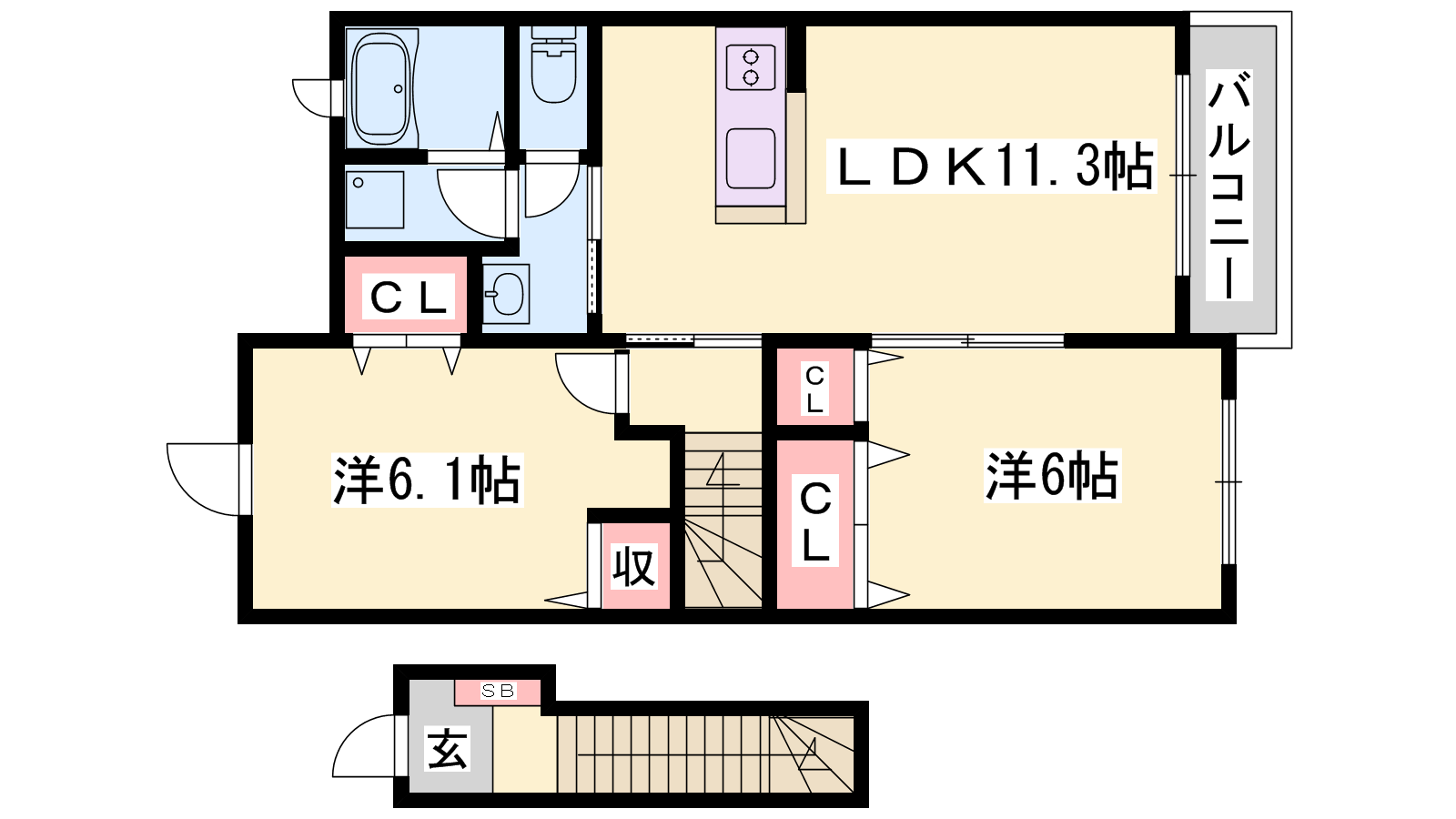 - LDK11.3帖、洋室6帖、洋室6.1帖