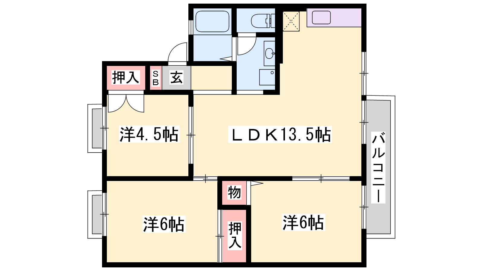- LDK13.5帖、洋室6帖、洋室6帖、洋室4.5帖