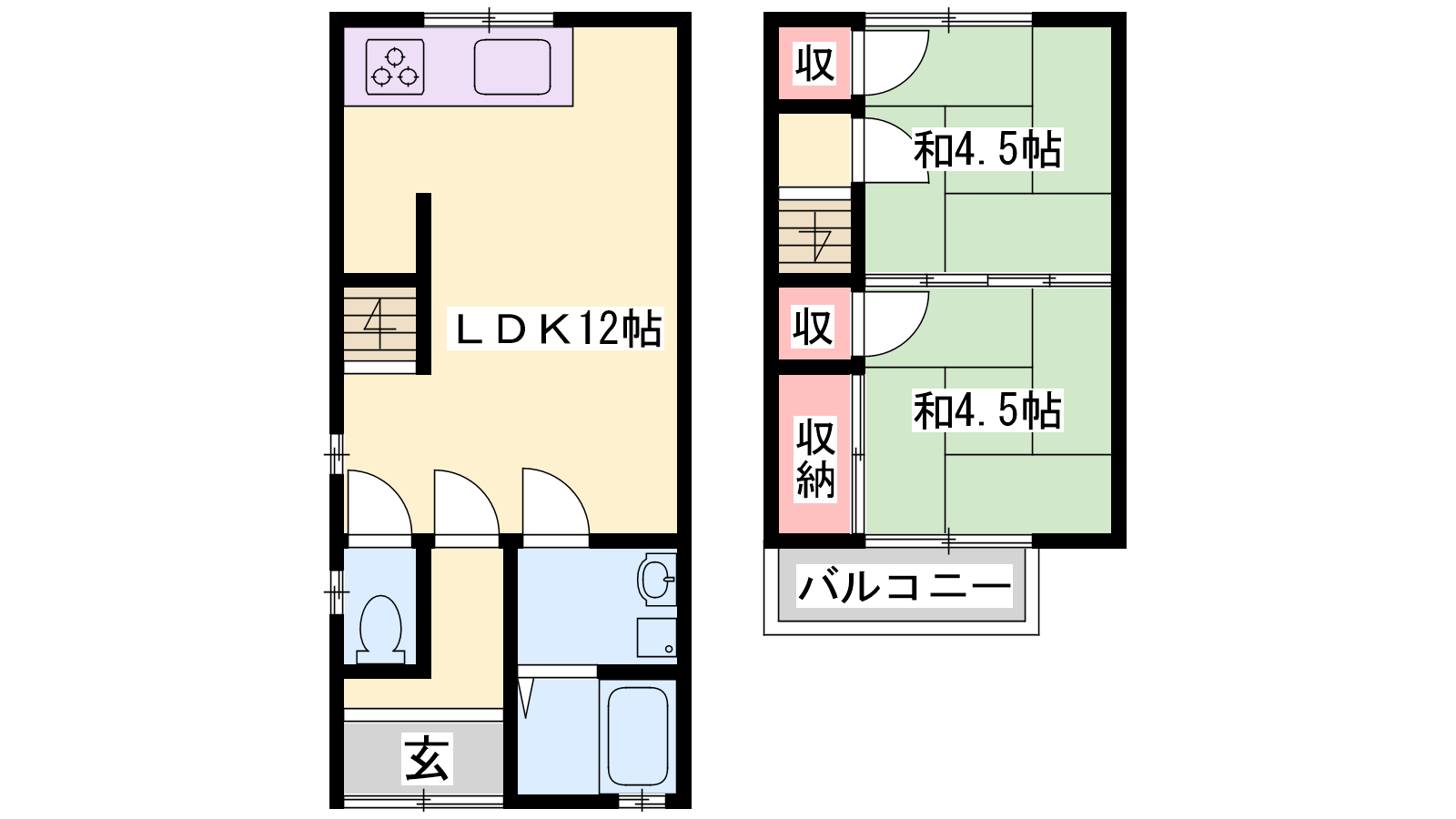 - LDK12帖、和室4.5帖、和室4.5帖