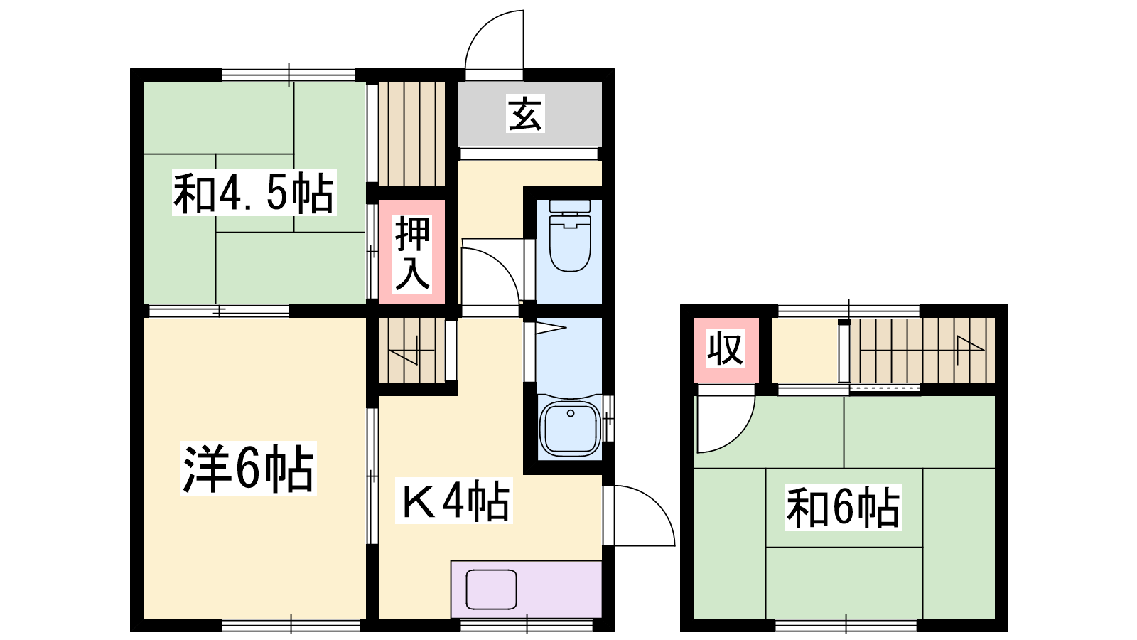 - K4帖、和室4.5帖、和室6帖、和室6帖