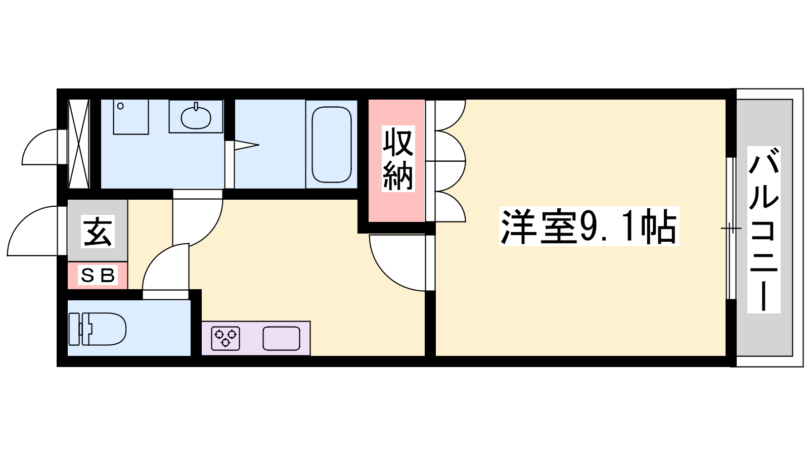 - K2帖、洋室9.1帖