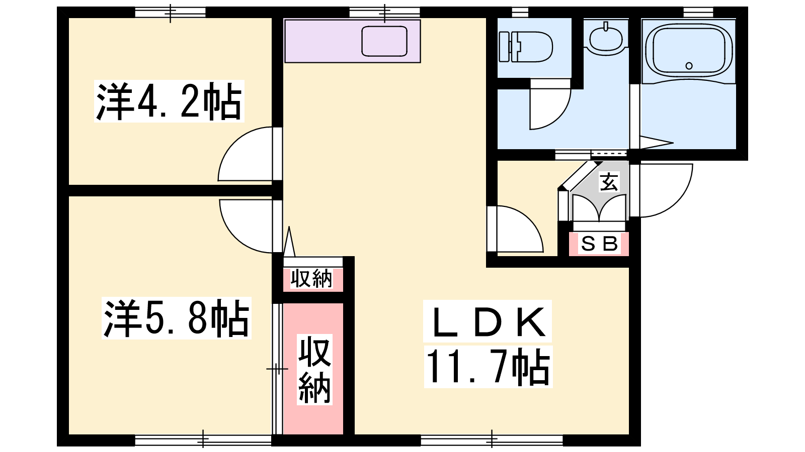 - LDK11.7帖、洋室4.2帖、洋室5.9帖