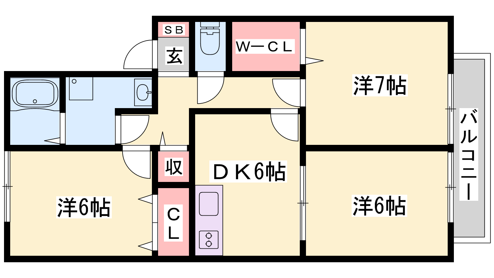 - DK6帖、洋室7帖、洋室6帖、洋室6帖