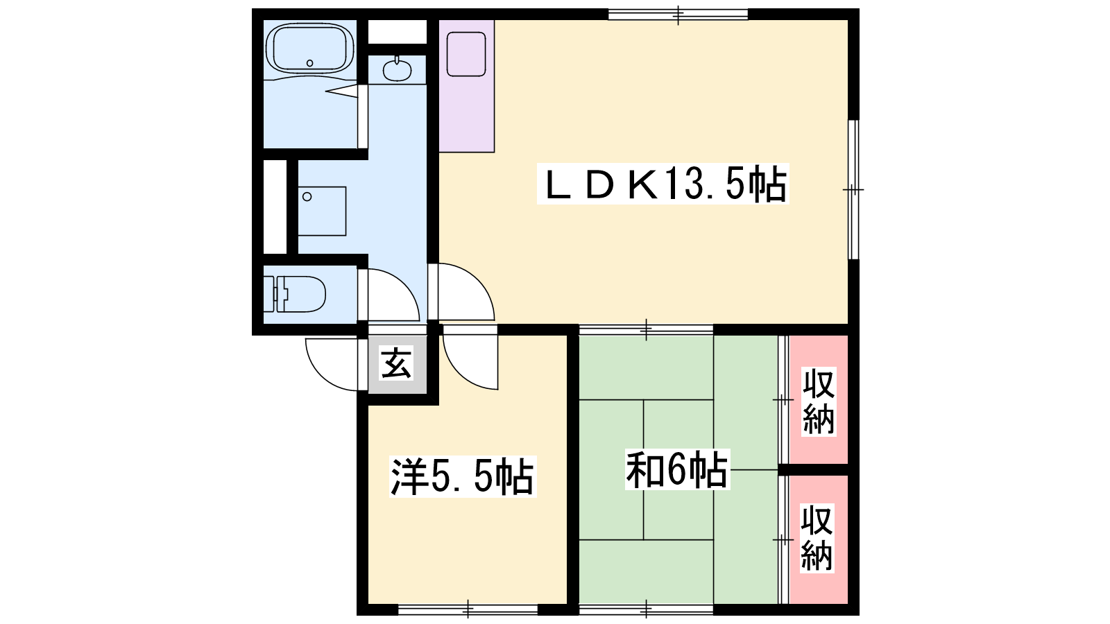 - LDK13.5帖、洋室5.5帖、和室6帖