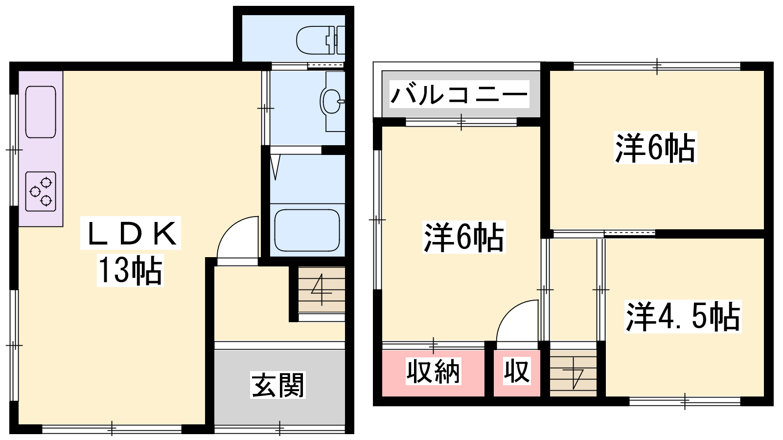 - LDK13帖、洋室6帖、洋室6帖、洋室4.5帖