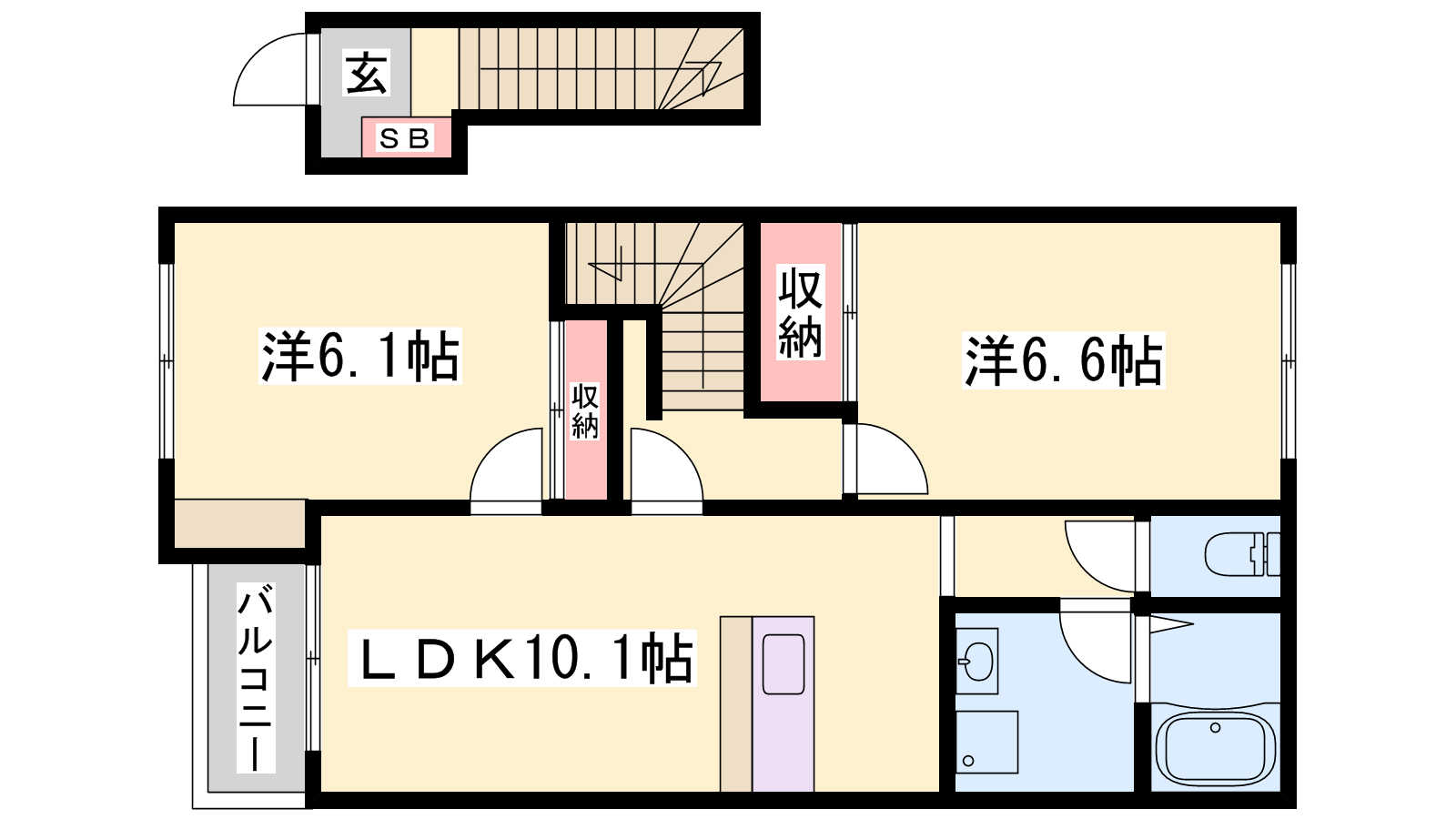 - LDK10.1帖、洋室6.6帖、洋室6.1帖