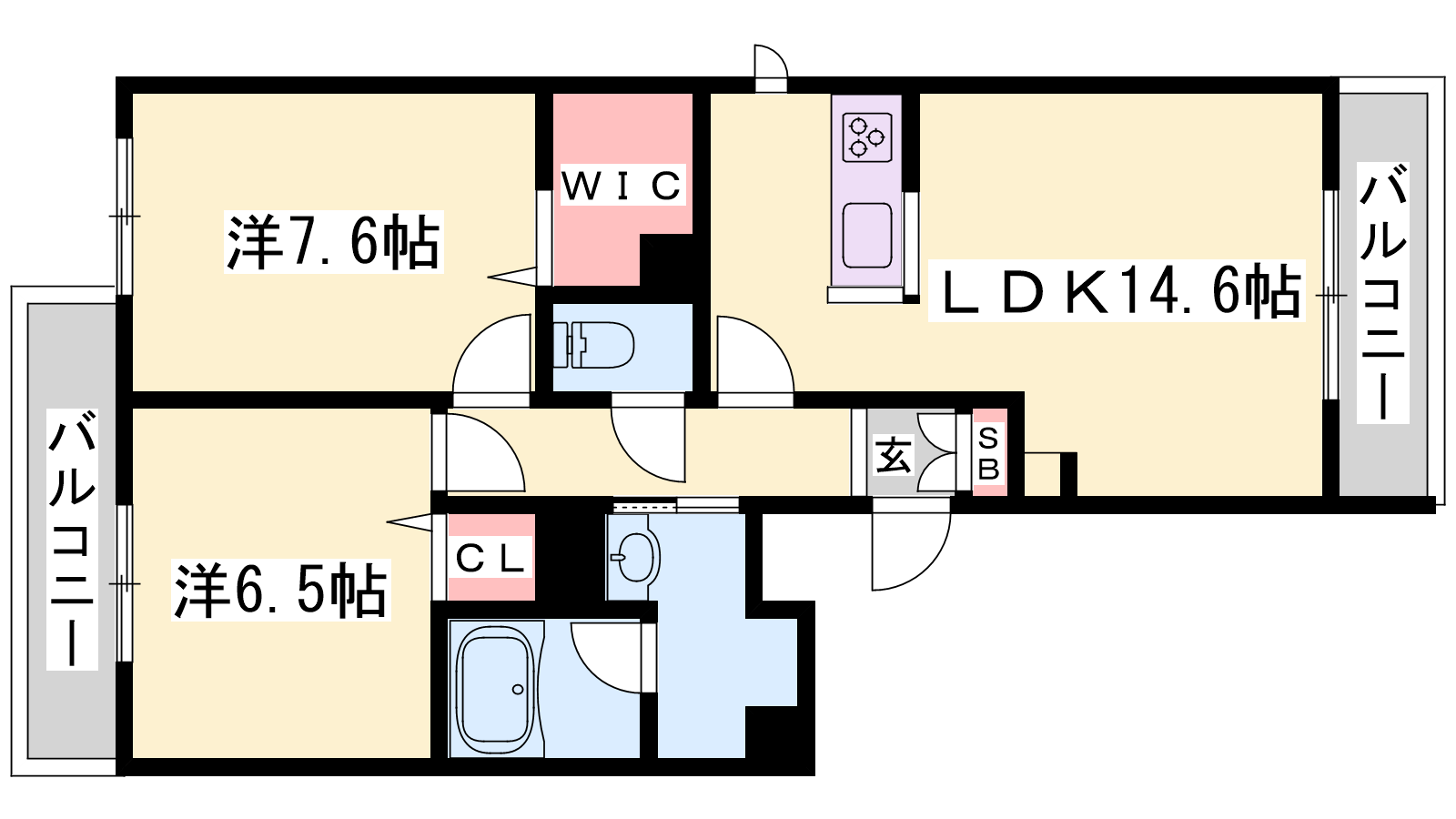 - LDK14.6帖、洋室6.5帖、洋室7.6帖