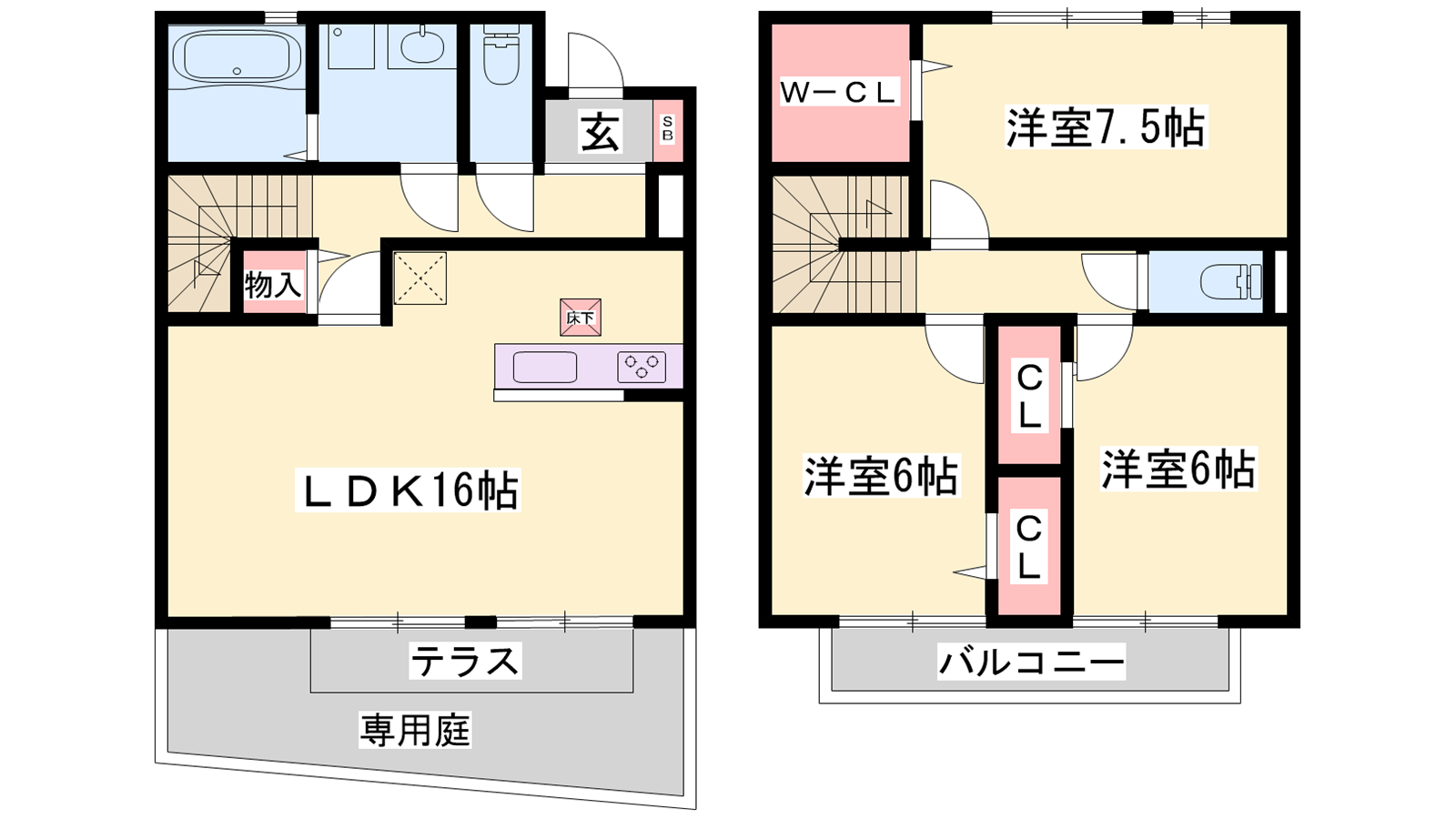 - LDK16帖、洋室7.5帖、洋室6帖、洋室6帖