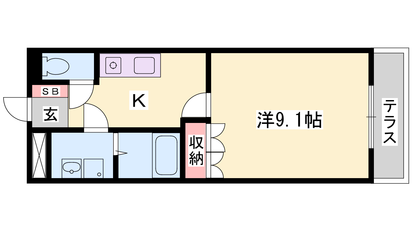 - K2.5帖、洋室9.1帖