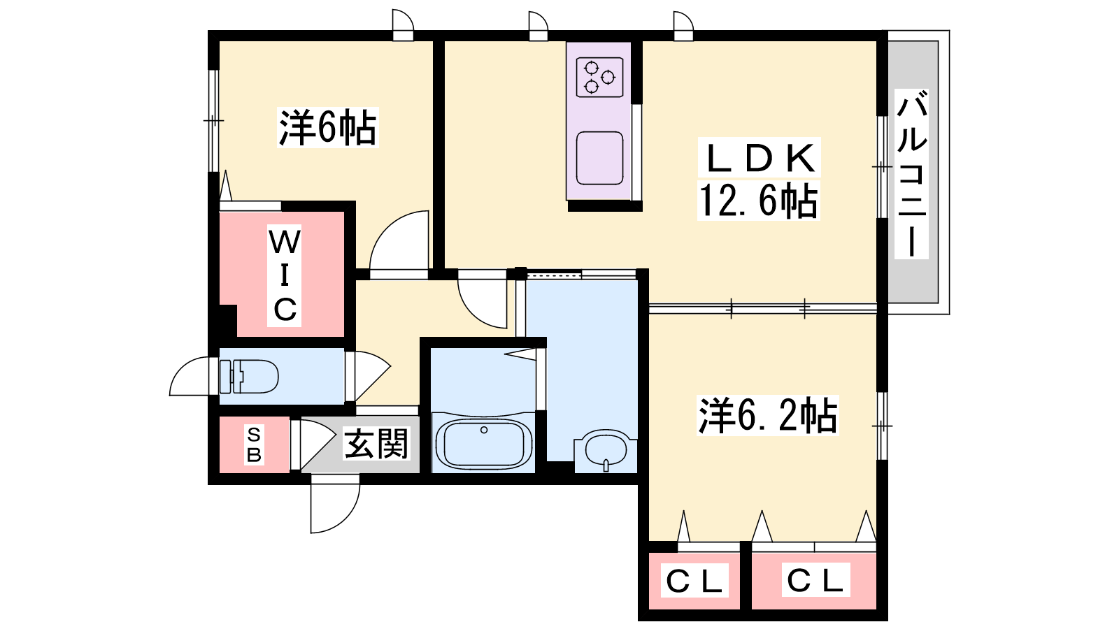 - LDK12.6帖、洋室6.2帖、洋室6帖