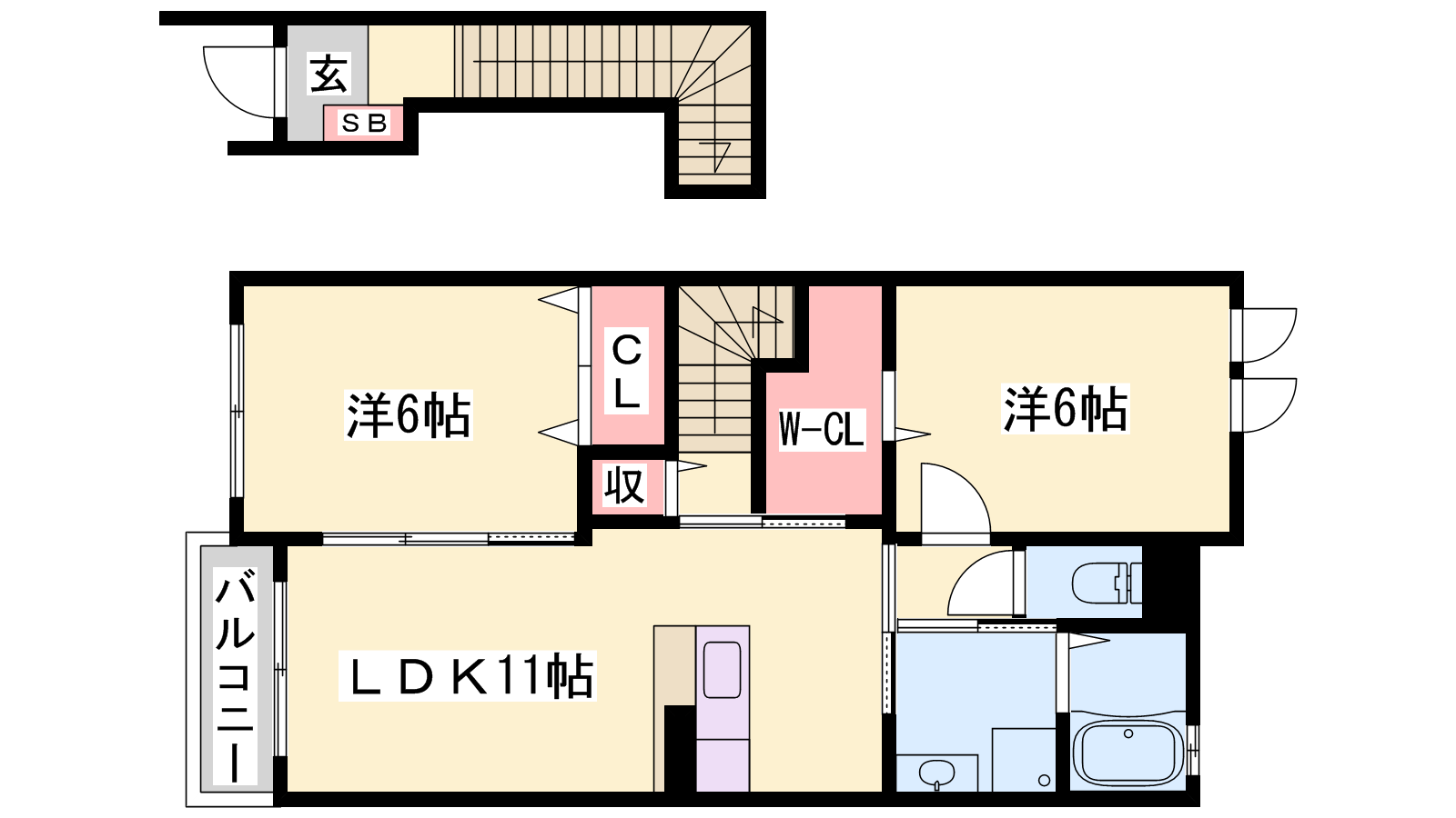- LDK11.3帖、洋室6帖、洋室6帖