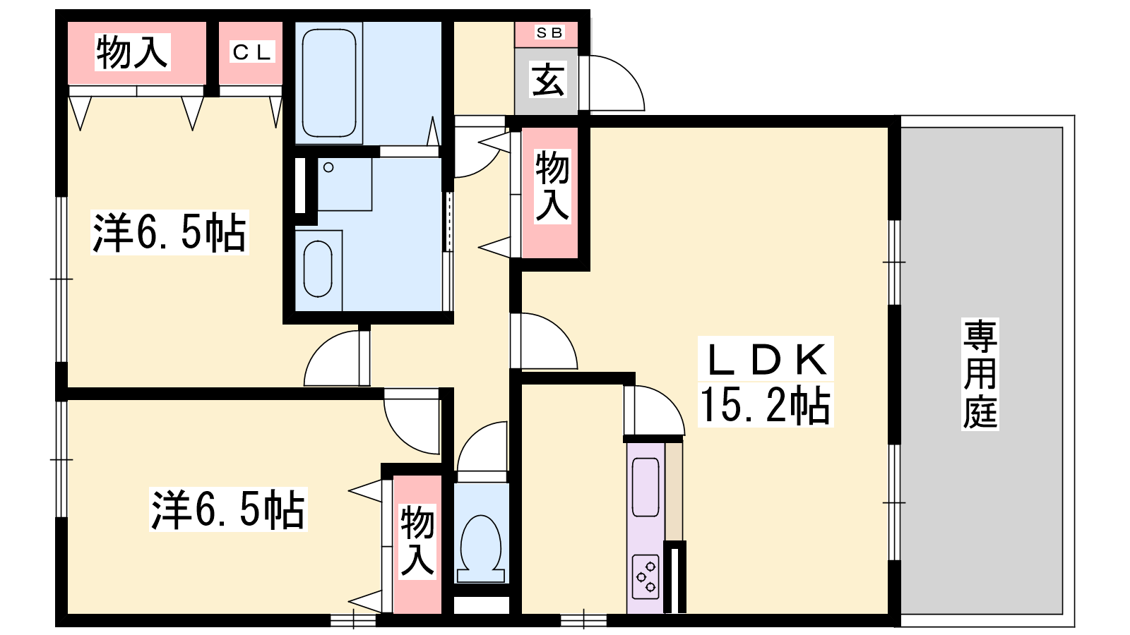- LDK15.2帖、洋室6.5帖、洋室6.5帖