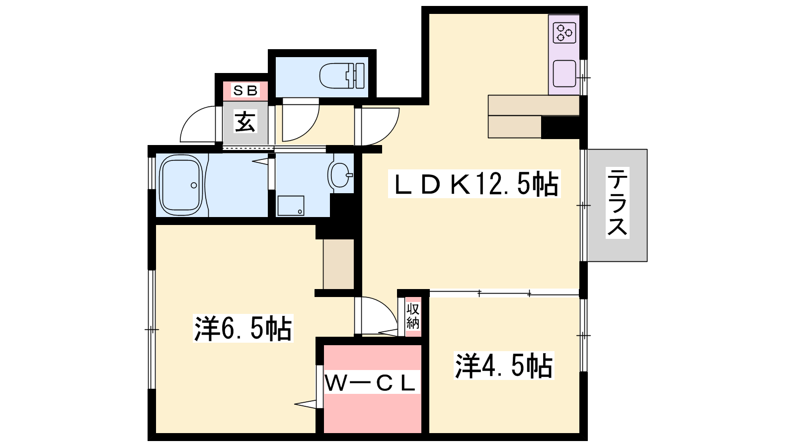 - LDK12.5帖、洋室6.5帖、洋室4.5帖