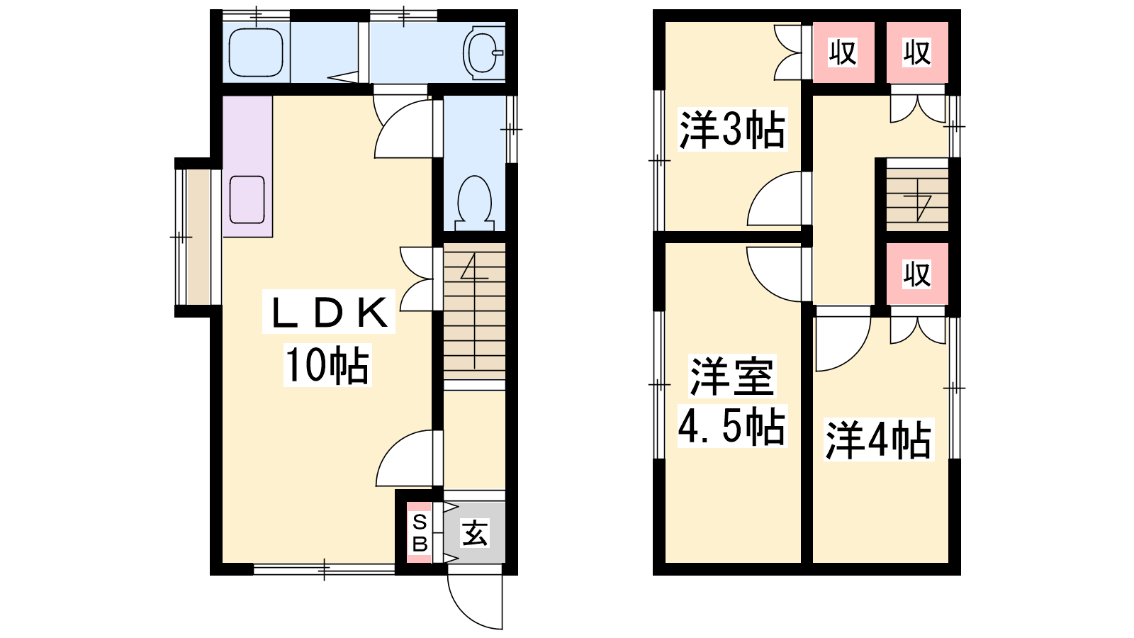 - LDK10帖、洋室4.5帖、洋室4帖、和室3帖