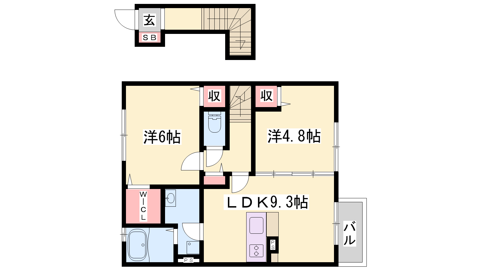 - LDK9.3帖、洋室6帖、洋室4.8帖