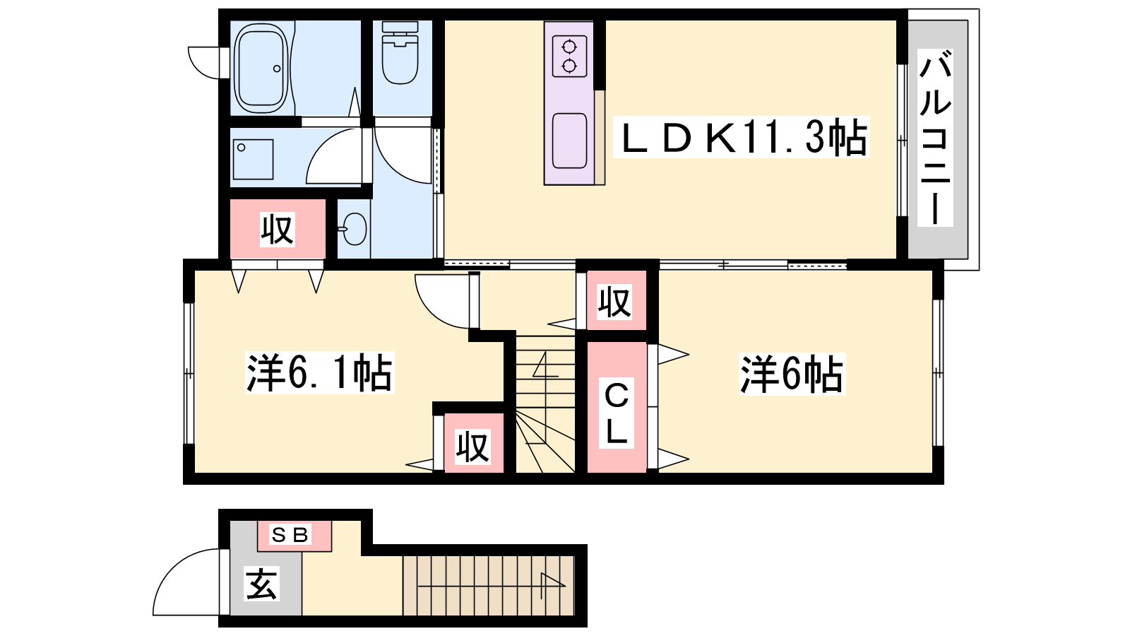 - LDK11.3帖、洋室6帖、洋室6.1帖