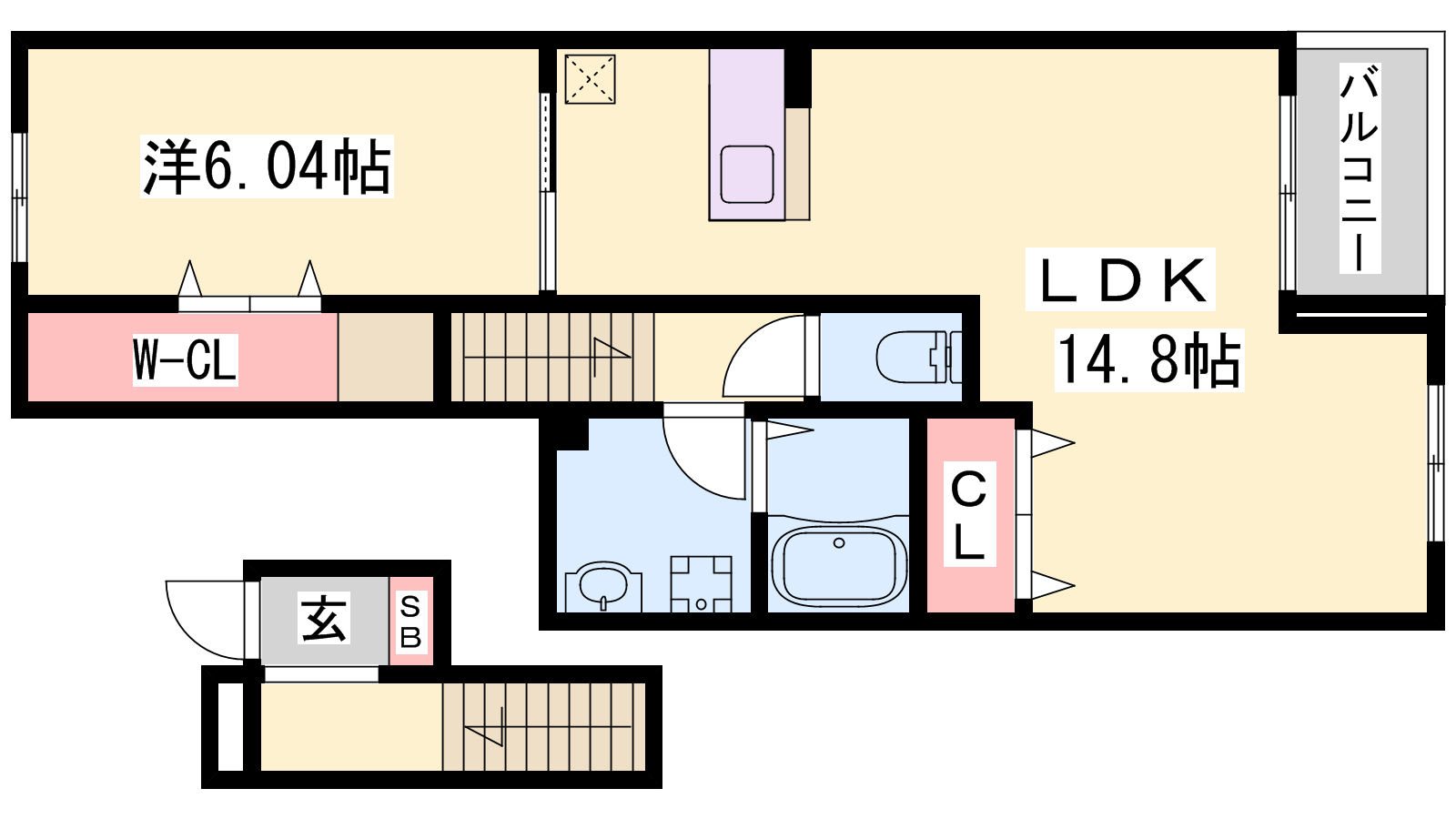 - LDK14.8帖、洋室6.1帖