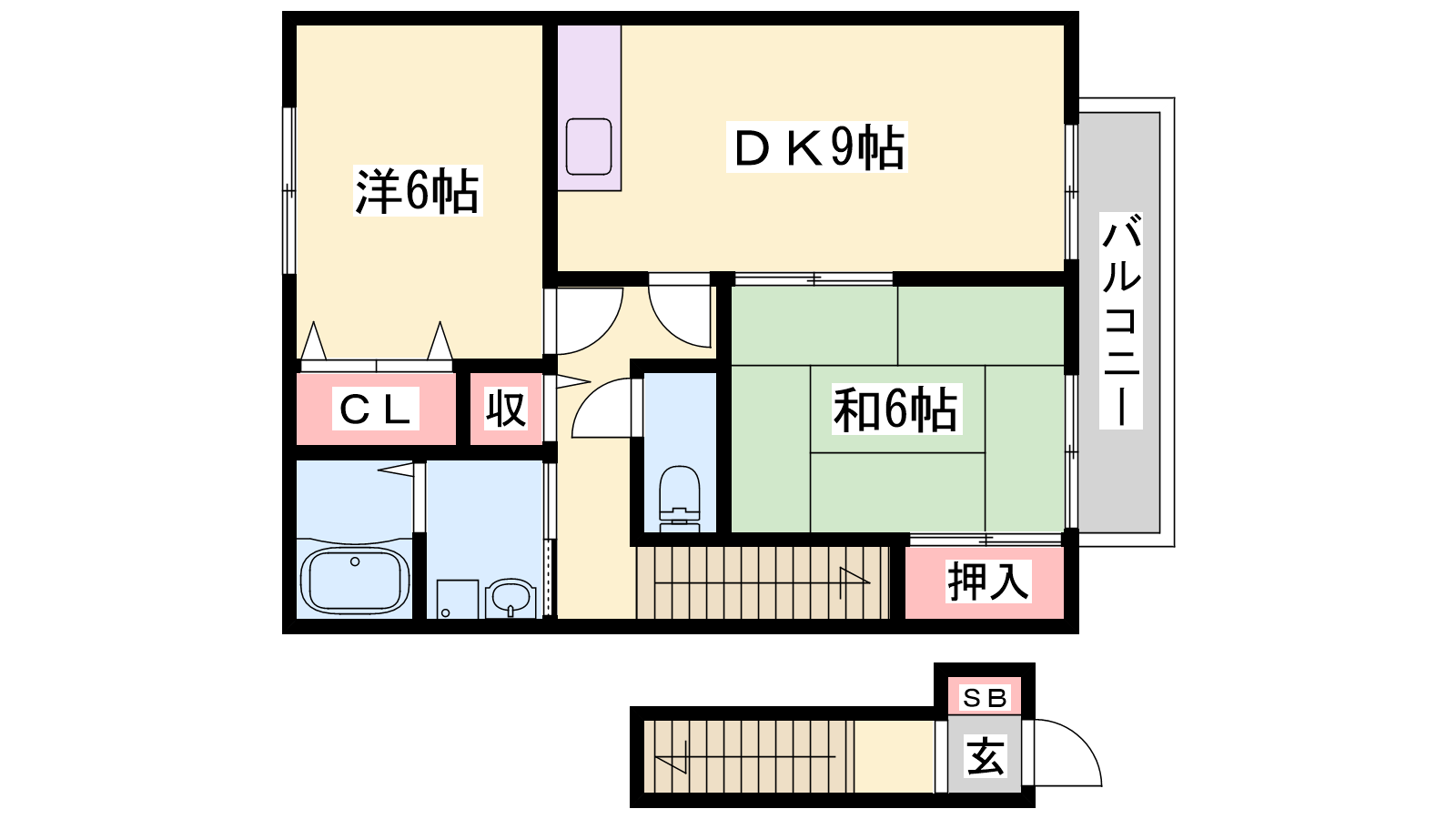- DK9帖、洋室6帖、和室6帖
