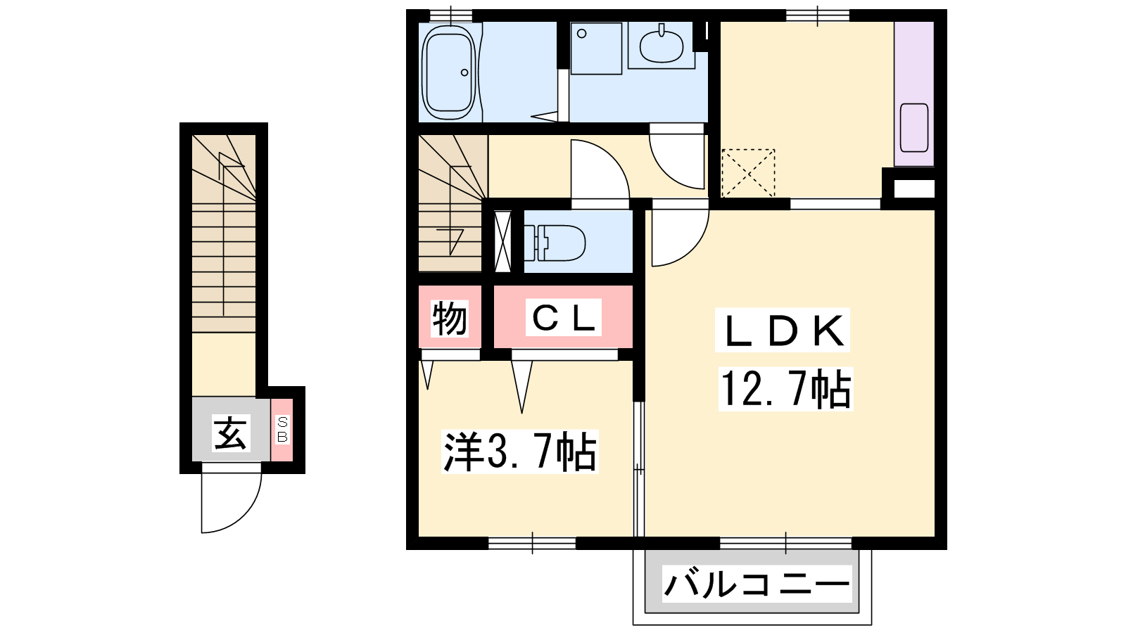- LDK12.7帖、洋室3.7帖