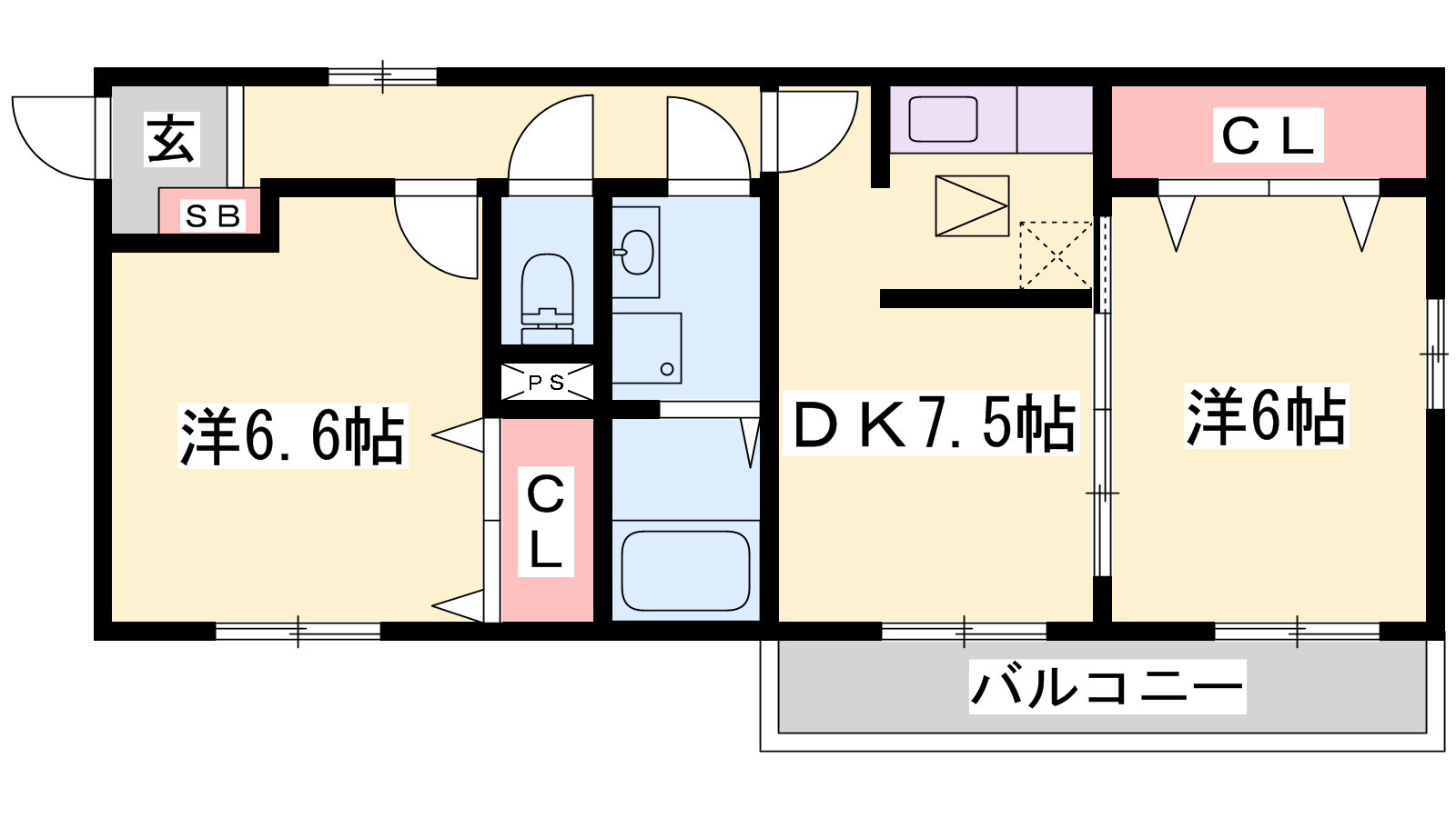 - DK7.5帖、洋室6.6帖、洋室6帖