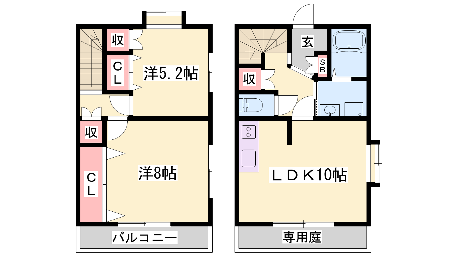 - LDK10帖、洋室8帖、洋室5.2帖