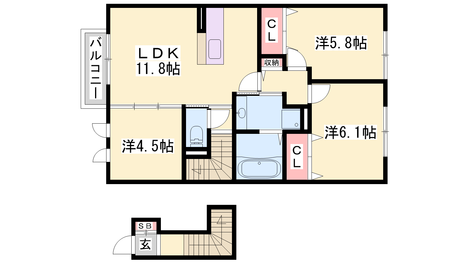 - LDK11.8帖、洋室6.1帖、洋室5.8帖、洋室4.5帖