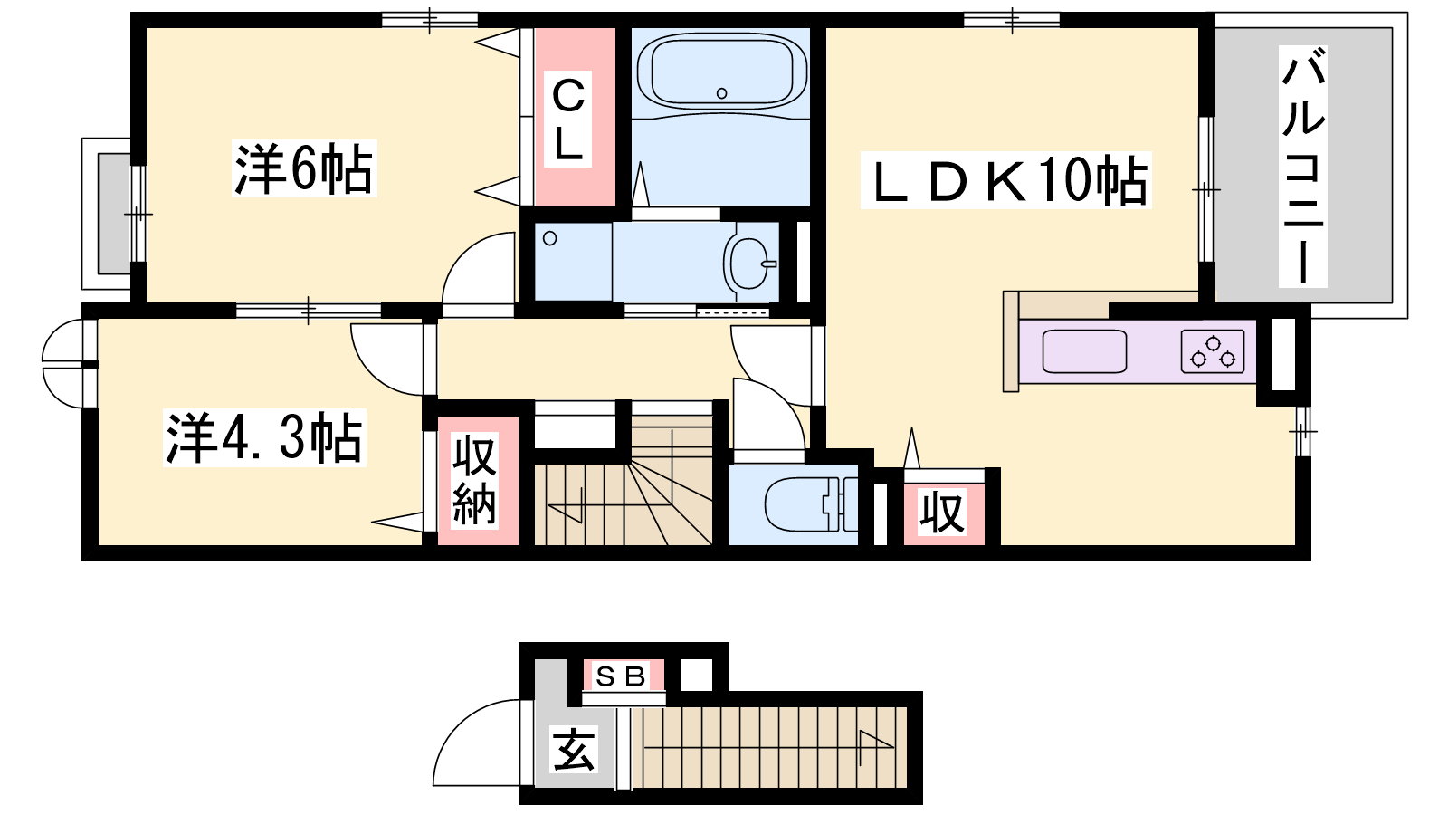 - LDK10帖、洋室6帖、洋室4帖