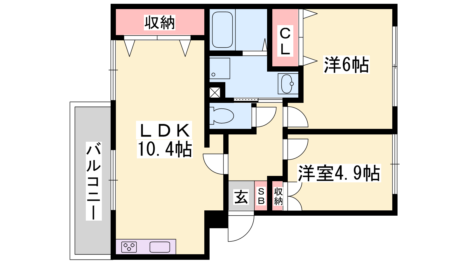 - LDK10.4帖、洋室6帖、洋室4.9帖
