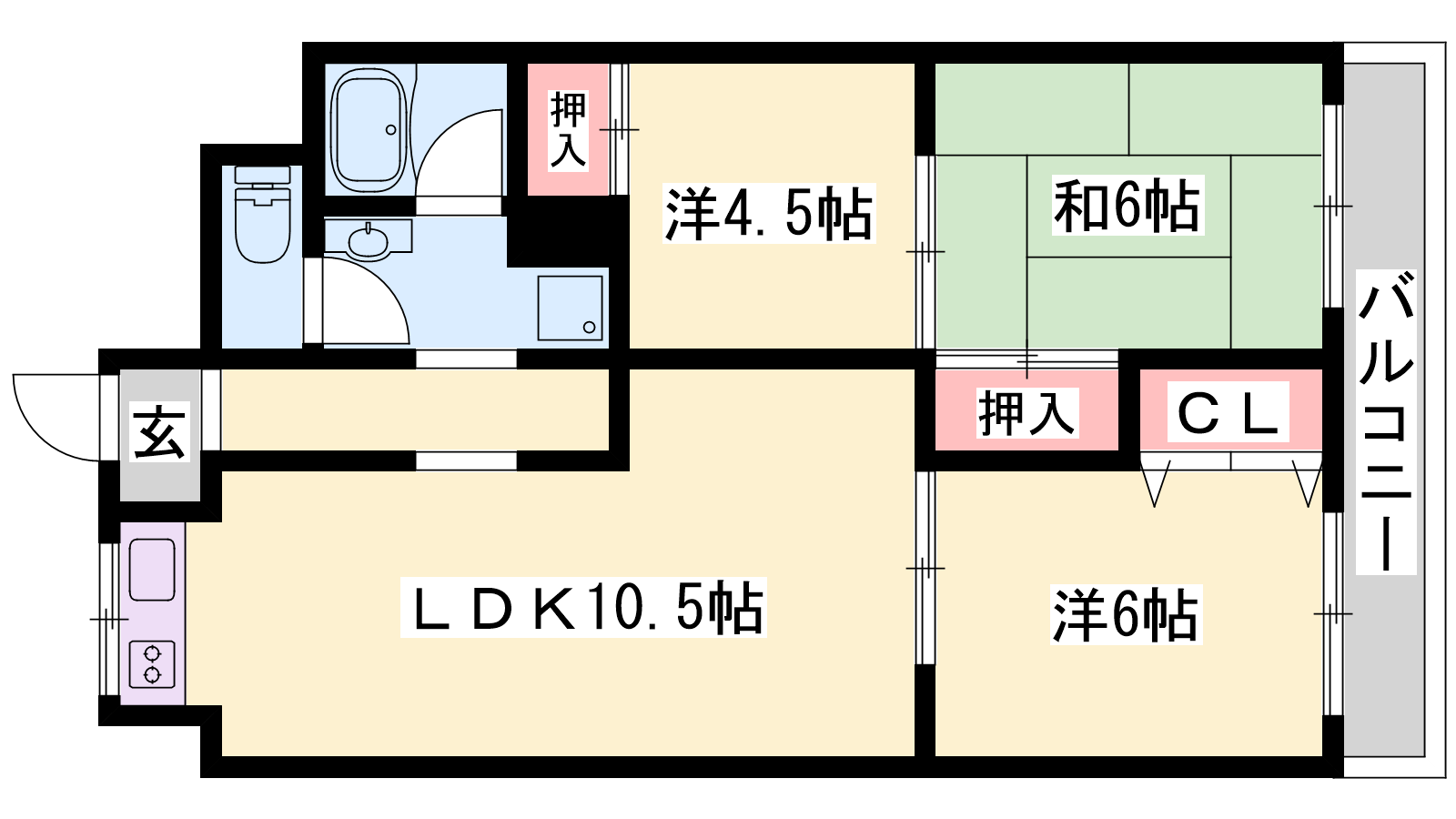 - LDK10.5帖、洋室6帖、和室6帖、洋室4.5帖