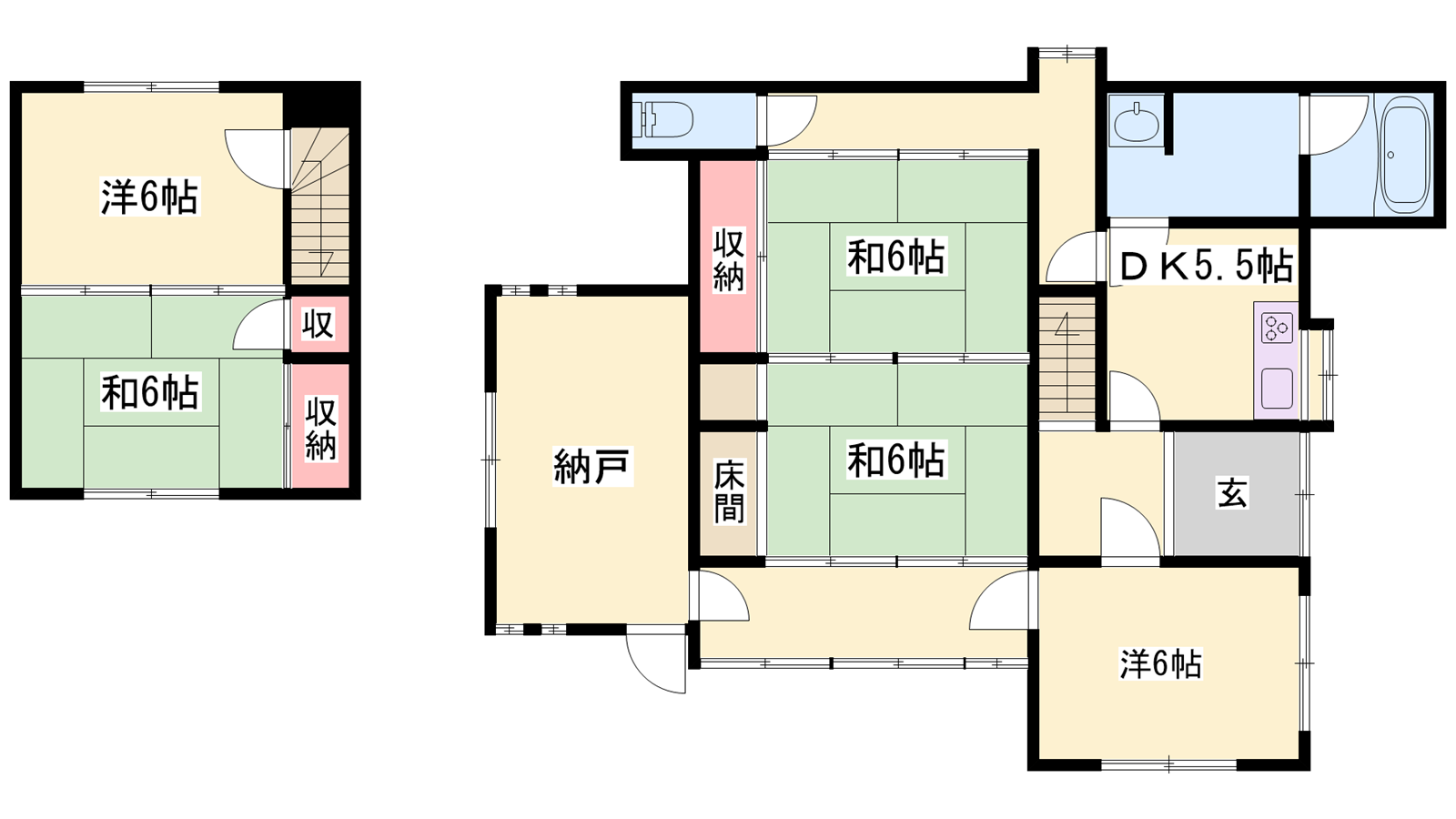 - DK5.5帖、洋室6帖、洋室6帖、和室6帖、和室6帖、和室6帖