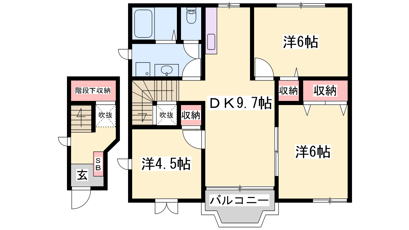 - LDK9.7帖、洋室6帖、洋室6帖、洋室4.5帖