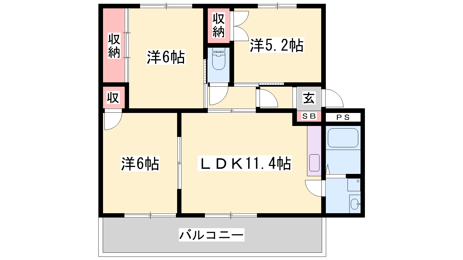 - DK11.4帖、洋室6帖、洋室5.2帖、洋室6帖