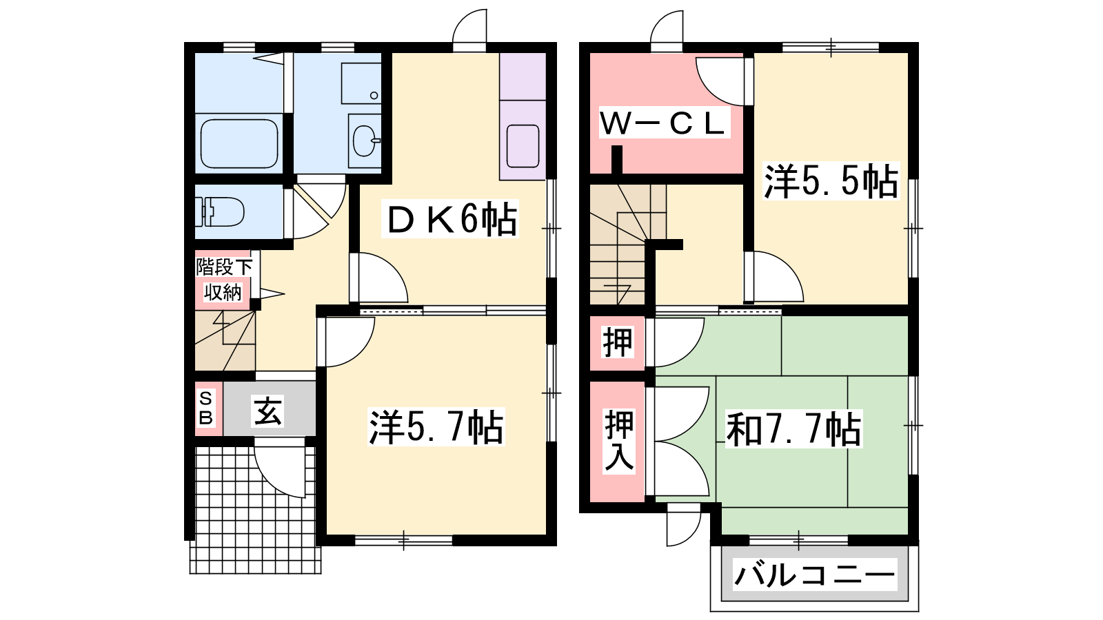 - DK6帖、洋室5.7帖、洋室5.5帖、和室7.7帖